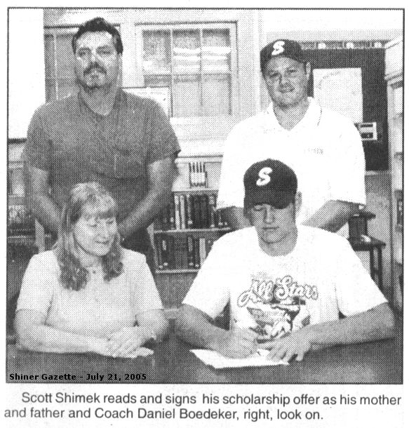 Scott Shimek, valedictorian of the 2005 graduating class of Shiner High School has accepted an offer from St. Mary's University in San Antonio to play baseball for the Rattlers.