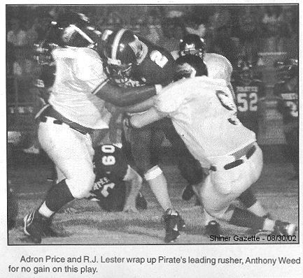 Adron Price and R.J. Lester wrap up Pirate's leading rusher, Anthony Weed for no gain on this play.