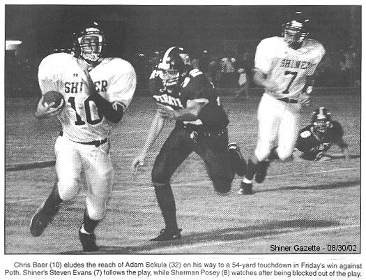 Poth threatened on their first drive of the final period. Despite good defense by Shiner, preventing the big play, the Pirates drove to the Comanche 5-yard line. On fourth-and-two, Baer broke through the line and sacked the quarterback on the 19 and Shiner took possession with 8:03 left on the clock.