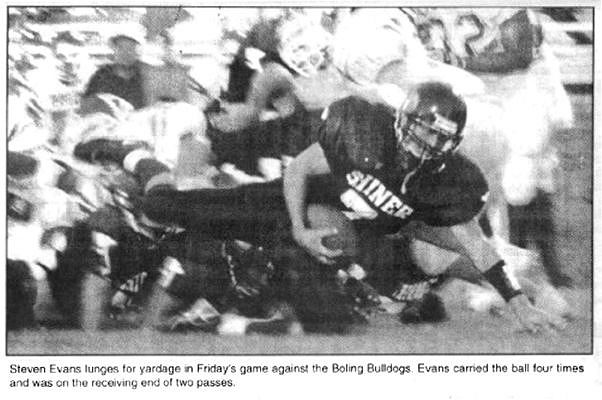 Steven Evans lunges for yardage in Friday's game against the Boling Bulldogs. Evans carried the ball four times and was on the receiving end of two passes. (all photos by Shiner Gazette)
