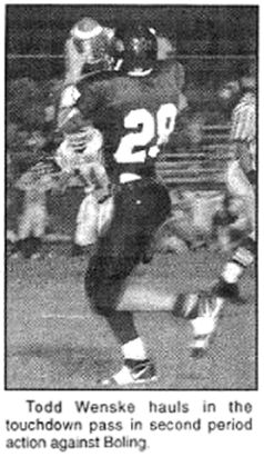 Todd Wenske hauls in the touchdown pass in second period action against Boling.