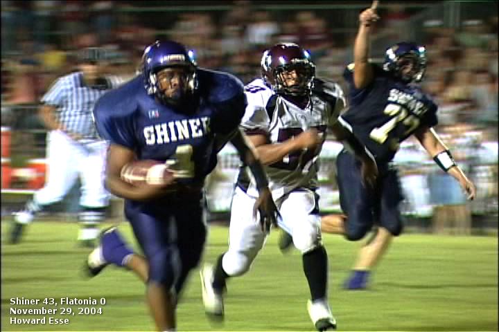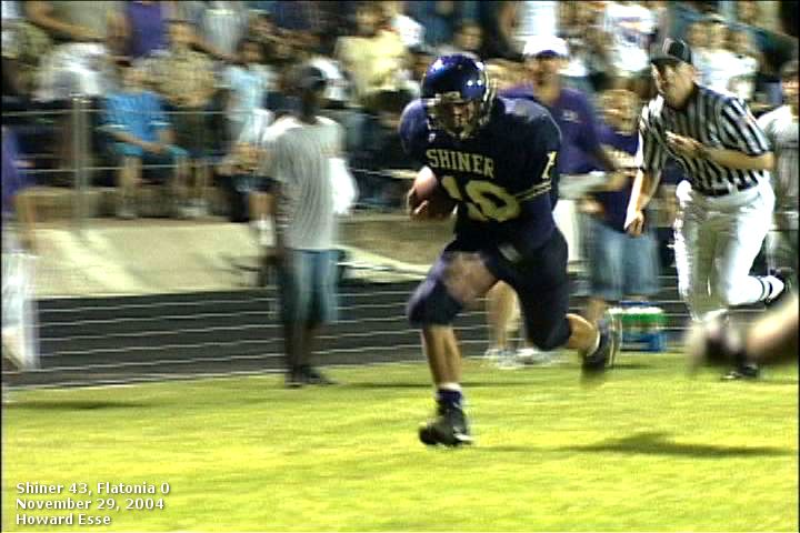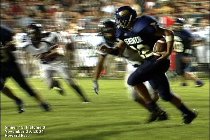 Shiner running back Chris Baer breaks away for one of his three TD's on Friday night against the Flatonia Bulldogs. photos by Howard Esse, Crossroads Legal Video