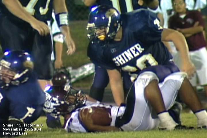 Shiner defensive lineman Dustin Pohler (60) gets up after bringing down Flatonia running back Lyndon Gutierrez.