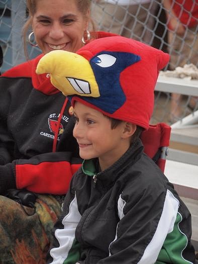 Cody Hollenbach gets into the spirit leading the cheering in the stands. photos provided by Lori Raabe