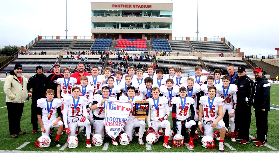 Shiner St. Paul finished the season 6-8 overall, 2-1 in district and won the TAPPS Div. IV state championship game 29-21 over Fort Worth Lake Country Christian on Saturday, December 8, 2018 at Hewitt Midway ISD Panther Stadium in Waco.