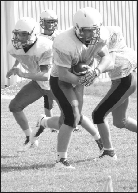 The Shiner football team goes through a workout earlier this month. Shiner scrimmaged at Karnes City Friday and hosts Luling today. photos by Mark Lube, Shiner Gazette