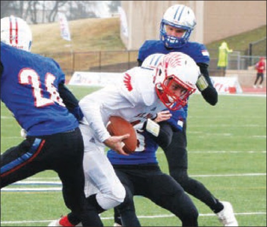 Garrett Wauson hunts down a loose ball in St. Paul’s 29-21 win over Lake Country Christian in the state game.