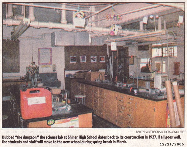 Dubbed "the dungeon," the science lab at Shiner High School dates back to its