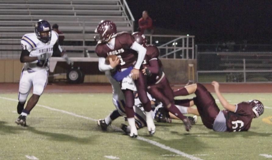 Shiner kicked to start the game but forced the Eagles to punt after three plays. At the Johnson City 44, Shiner ran three plays for nine yards rushing and Wallace broke through for a 35-yard run on fourth down.
