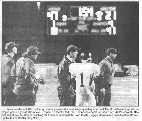 Shiner got first possession on their 33-yard line. The Comanches fumbled on the fifth play but recovered on the 41, only to lose the ball on the next play on another fumble.