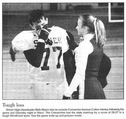 The Windthorst Trojans won the Class 1A state title with a 28-27 win over the Comanches. The difference was a missed extra point by sophomore Ryan Kloesel with just :32 left in the game.