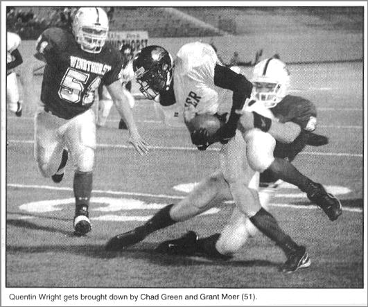 Quentin Wright gets brought down by Chad Green and Grant Moer (51).