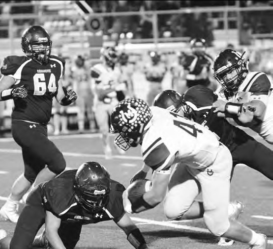 The Comanches worked their way to near midfield but a long pass was intercepted, ending the half. Shiner started moving the ball to open the second half. Mikes had a 16-yard run off the bootleg for a first down to the Mason 49. He later connected with Nevlud on a 26-yard completion and later an 11-yard run by Donyai Taylor got Shiner inside the 10 but some flags and negative running plays soured Shiner’s deepest advancement.