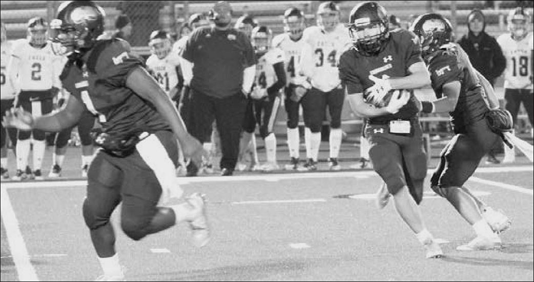 Taylor then took a jetsweep handoff and scored from 66 yards. The Comanches started their next possession near the 50 but a penalty moved it back to the 34. No big deal for the Purple as Doug Brooks took a handoff and race 66 yards for his second score of the night.