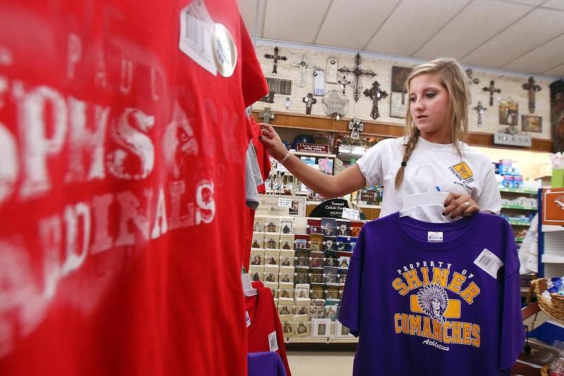 Shiner High School Junior Hannah Koenning looks over the football merchandise at Quality
