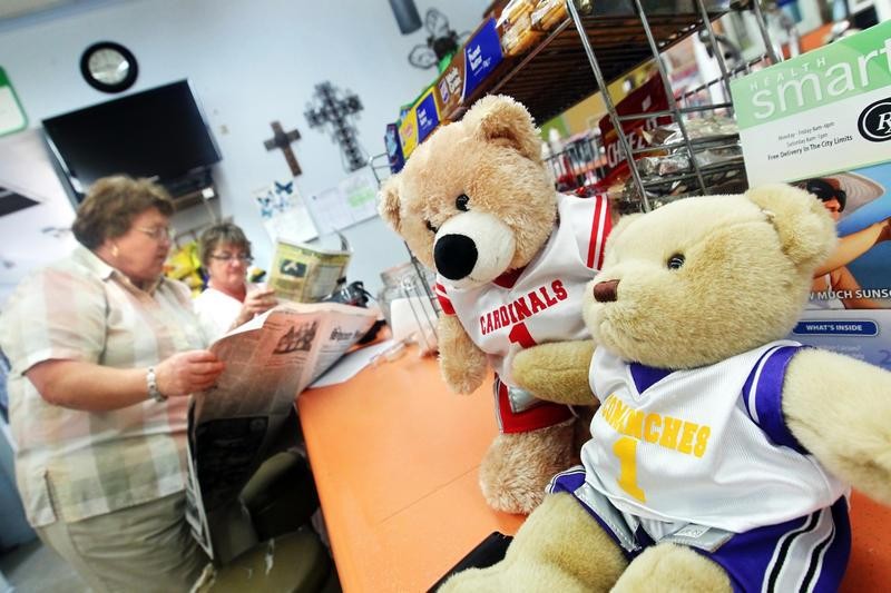 Helen Patek and Darlene Kresta at Quality Pharmacy check out the sports section of