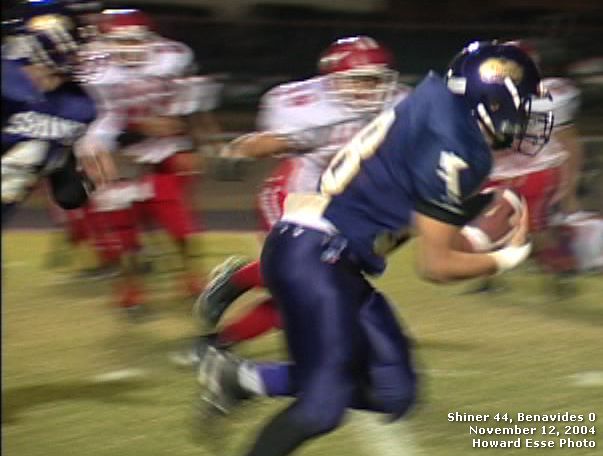 GAME STATISTICS: Benavides Shiner First Downs 3 14 Rushes-Yards 24-(-4) 33-296 Passing Yards 8 0 Comp-Att-Int 1-15-3 0-4-1 Return Yards 151 112 Punts 6-29 1-23 Fumbles-Lost 0-0 3-1 Penalties-yds 6-30 4-30 INDIVIDUAL STATISTICS: Rushing - Benavides: David Gonzales 12-19, Cesar Gonzales 1-(-3), Joe Andrew Pena 5-2, Milo Galvan 3-(-15), Geoffrey Bennett 1-(-11), Alejos Jaimez 2-4 Shiner: Chris Baer 12-142, Dustin Mayberry 9-131, Trey Curtis 6-3, Isaac Casares 1-5, Kyle Condel 3-9. Passing - Benavides: Galvan 0-10-3 0, Bennett 0-4-0 0, Joe Garza 1-1-0 8. Shiner: Curtis 0-4-1 0. Receiving - Benavides: Bennett 1-8. Shiner: none. SCORING SUMMARY: 1 2 3 4 F Benavides 0 0 0 0 -- 0 Shiner 7 21 9 7 -- 44 SCORING DETAILS: First Quarter S - Chris Baer 53 run (Scott Shimek kick), 10:41 Second Quarter S - Baer 8 run (Shimek kick), 11:53 S - Ryan Kloesel 20 pass interception return (Shimek kick), 10:13 S - Dustin Mayberry 11 run (Shimek kick), 4:48 Third Quarter S - Shimek 37 FG, 6:28 S - Mayberry 49 run (kick failed), 3:30 Fourth Quarter S - Isaac Casares 5 run (Ryan Kloesel kick), 9:38