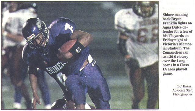 outgained the Longhorns 377 yards to 113, and Shiner's defense smothered any comeback attempt