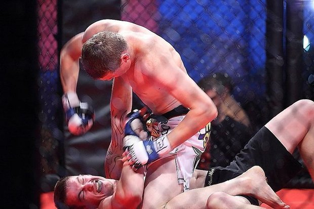 Zach Reese celebrates after winning a recent MMA bout.