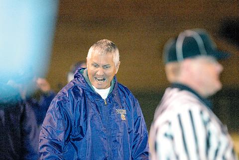 Shiner defensive coordinator Billy Turek gives an official an earful
