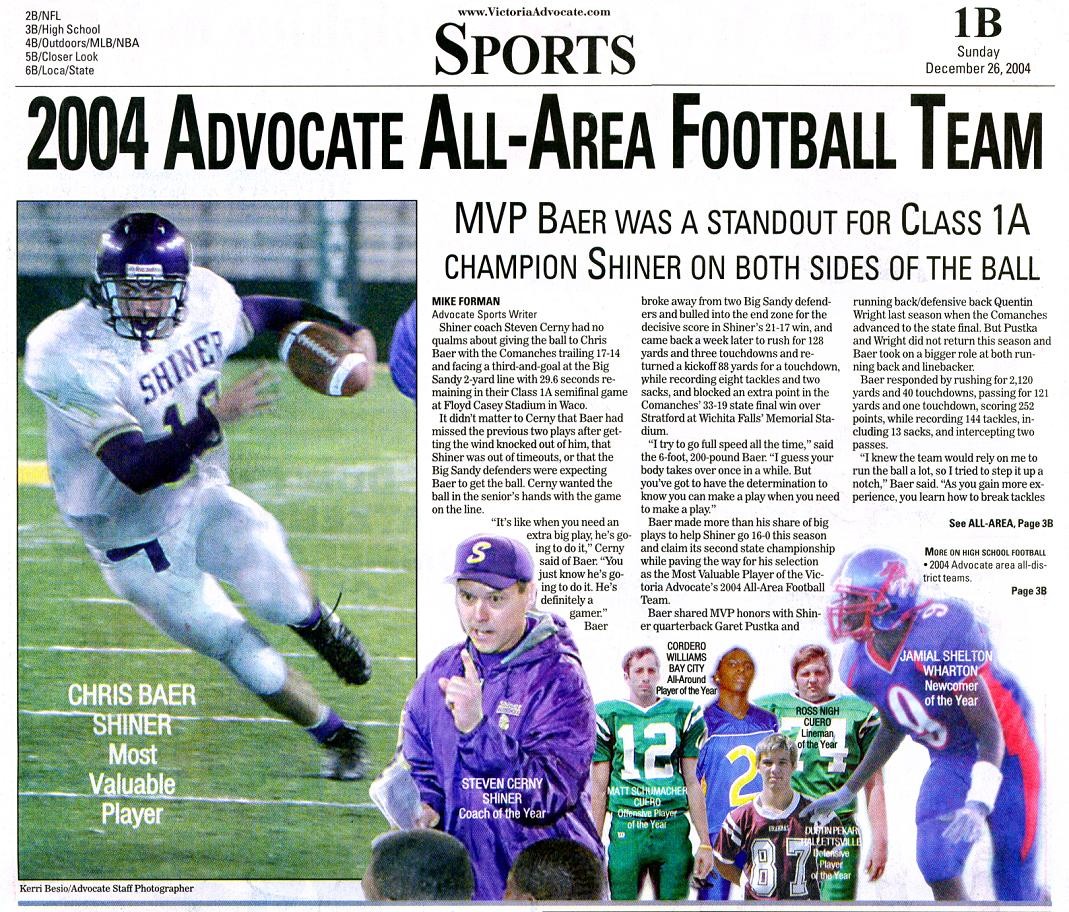 Most Valuable Player of the Victoria Advocate's 2004 All-Area Football Team.