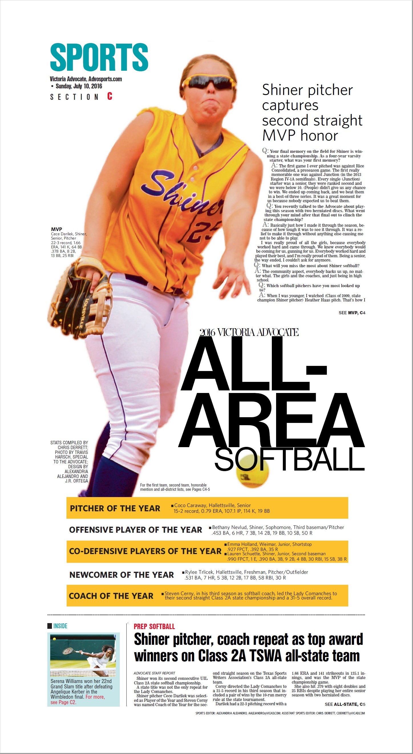 For the second straight year, Shiner pitcher Cece Darilek was selected as the Victoria Advocate All-Area Softball Team MVP.